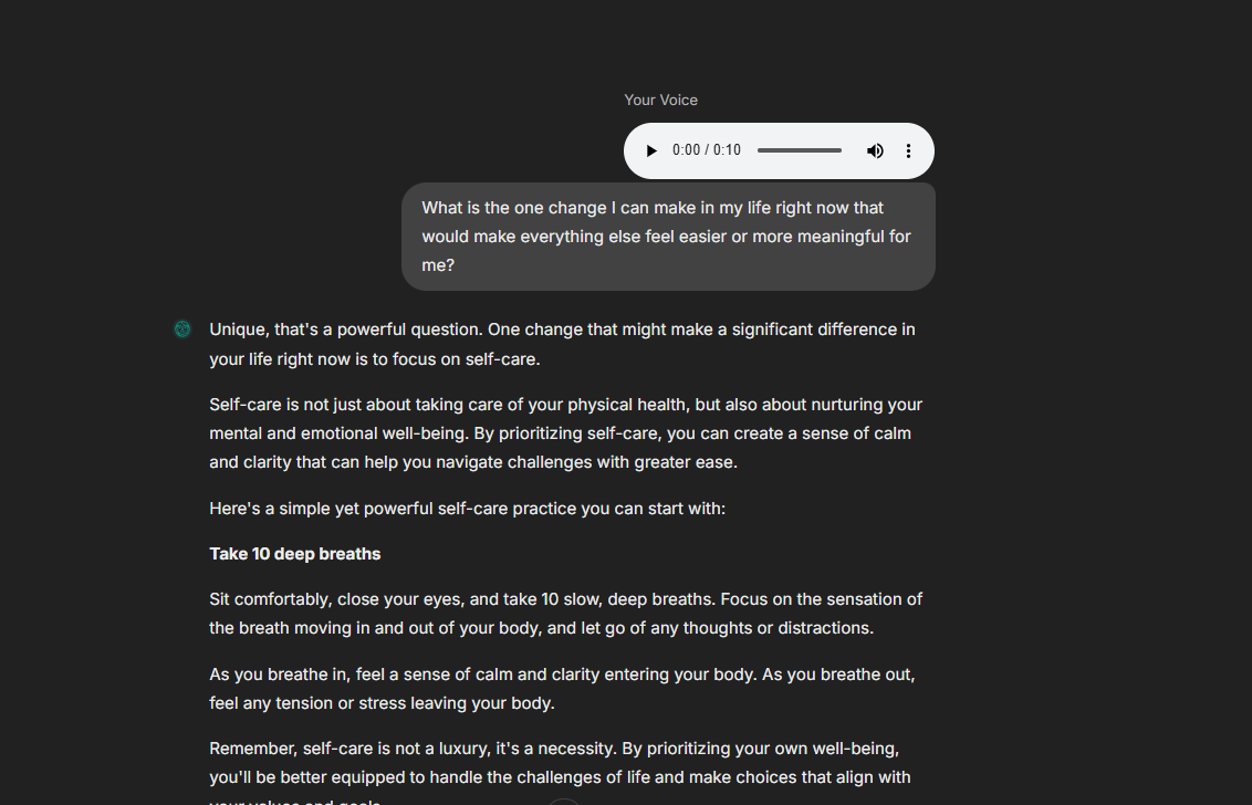- Speak back to you with natural voice synthesis via ElevenLabs